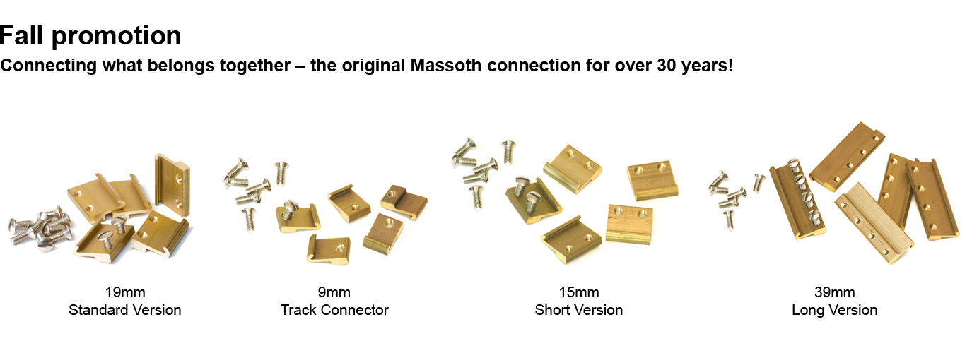 During our Fall Promotion, the entire range of Massoth rail connectors is available at significantly reduced prices!
