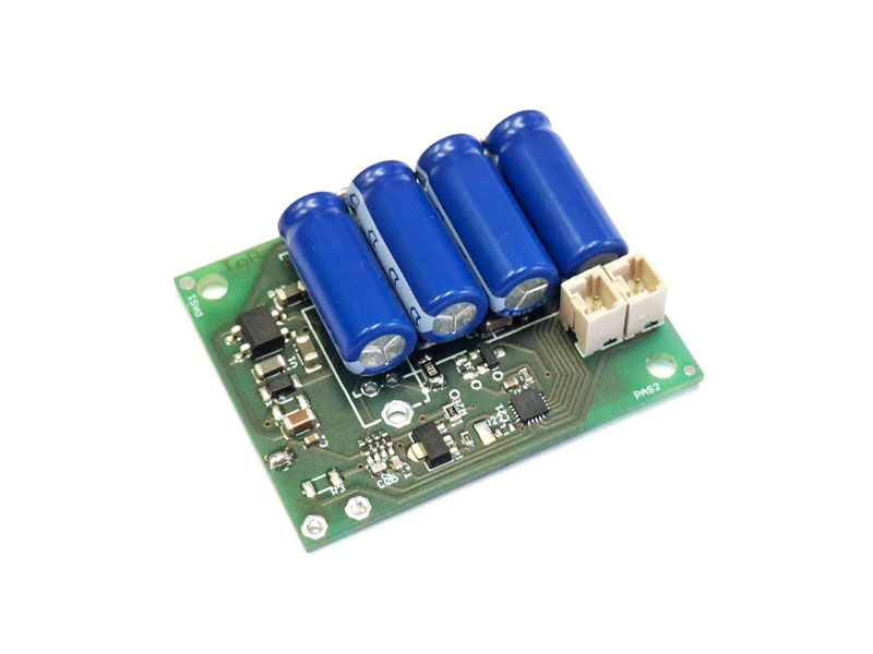 This coach lighting control is designed specifically for upgrading analog RhB express coaches with a powerful lighting regulation featuring four outputs. It replaces the factory-installed control units and offers four outputs along with strong buffering. All wiring inside the coach can be soldered directly to the pads on the underside. Two additional sockets allow connection of further elements (e.g. table lighting). A slide switch enables switching between analog and digital operation. (Picture shows prototype)