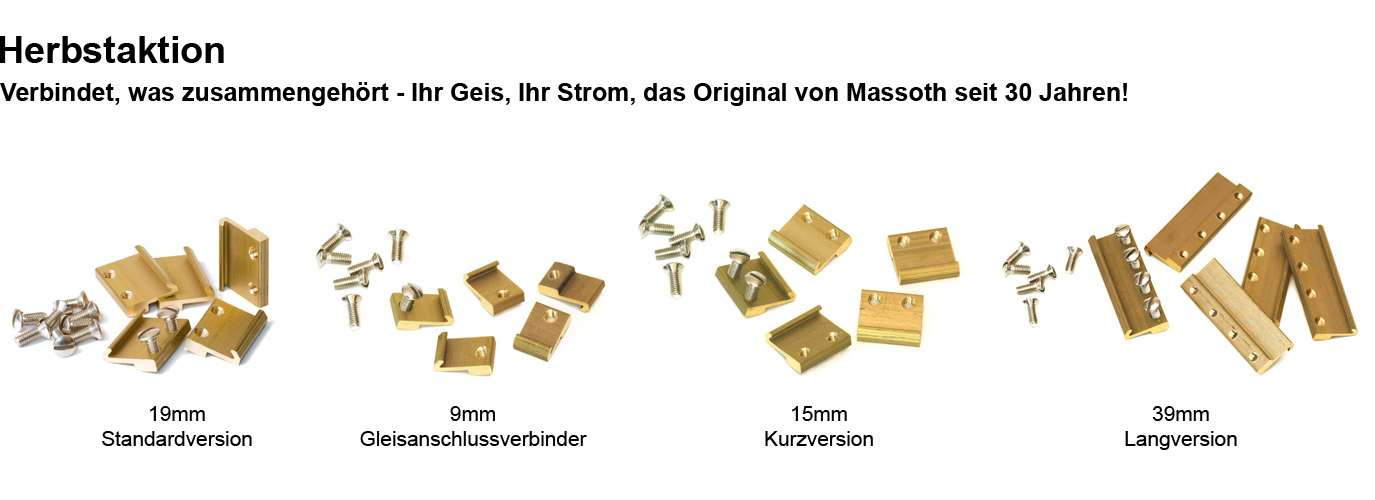Während unserer Herbstaktion bieten wir das gesamte Massoth Schienenverbindersortiment zu deutlich reduzierten Preisen an!